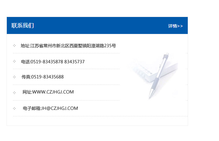地址:常州市新北區友邦商務大廈1幢16、17層  電話:0519-85101652  傳真:0519-85112595  郵編:213022  網址:www.cz-jiayue_cn.kajarl.com  郵箱:xiajifengaa@163.com